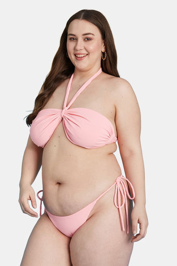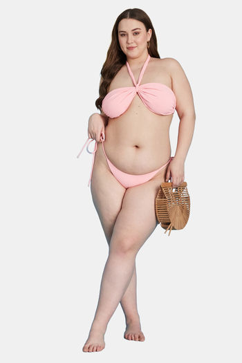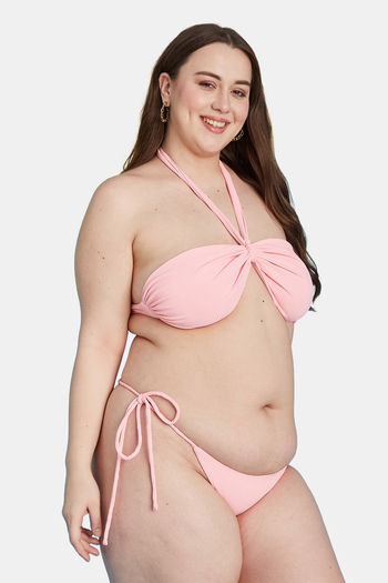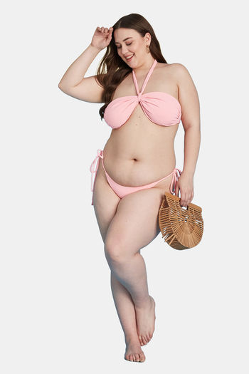 Secrets By ZeroKaata Stretchable Ribbed Halter Bikini Set - Pink