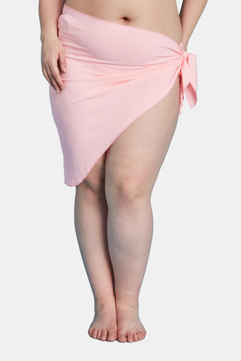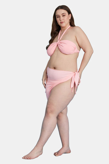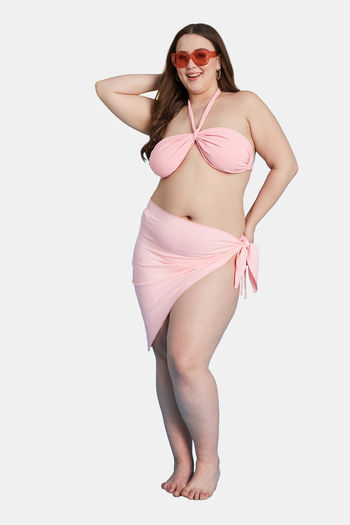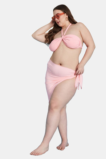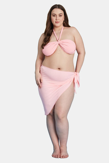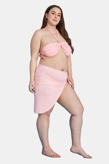 Secrets By ZeroKaata Stretchable Ribbed Halter Bikini Set with Sarong - Pink