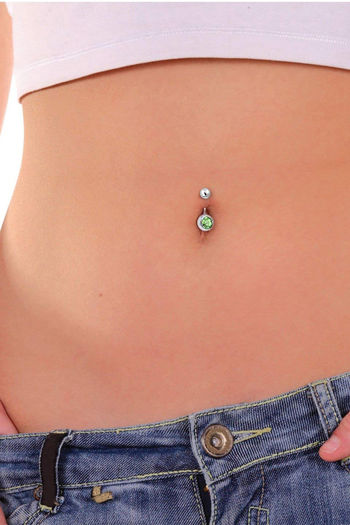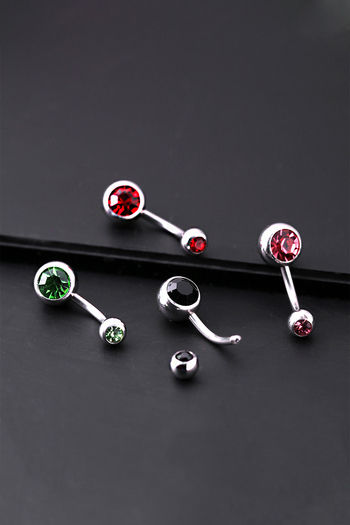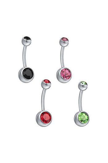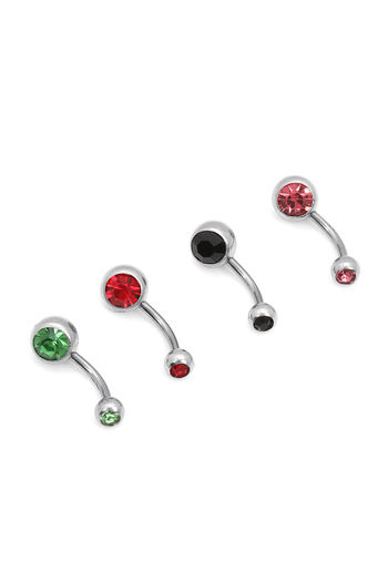 Yellow Chimes Set of 4 Pcs Silver - toned Navel Piercing Crystal Belly Button Rings