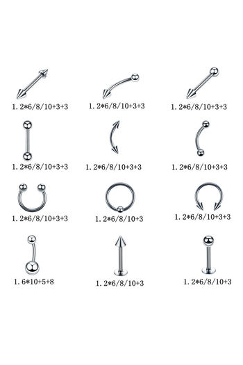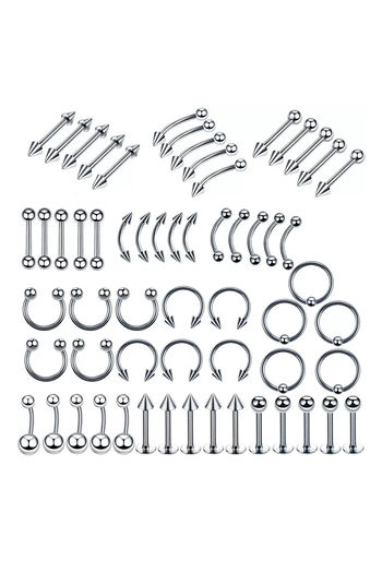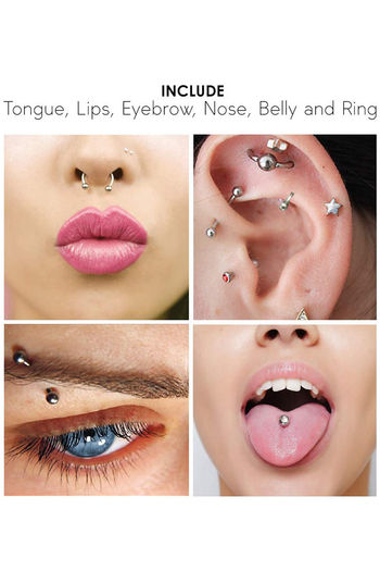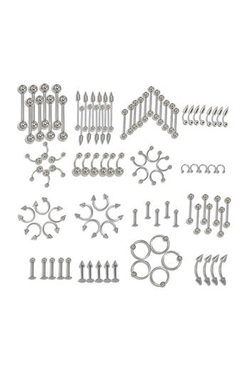Yellow Chimes Set of Body Piercing 85 Pcs Ear Eyebrow Nose Lips Stainless Steel Body Jewellery - Silver