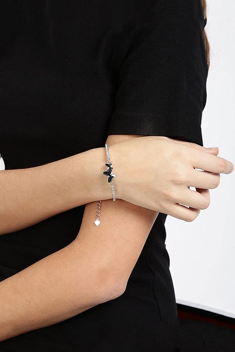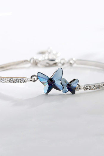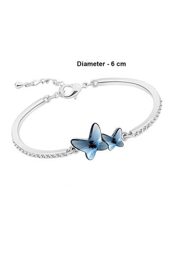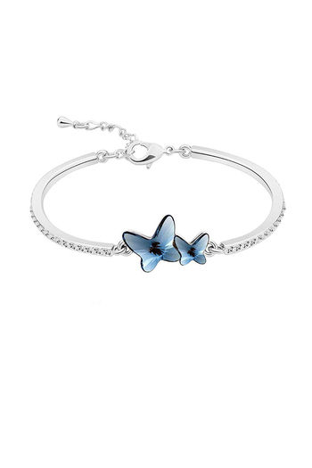 Yellow Chimes Silver Plated Blue Dual Butterfly Designer Crystals Bracelet - Blue