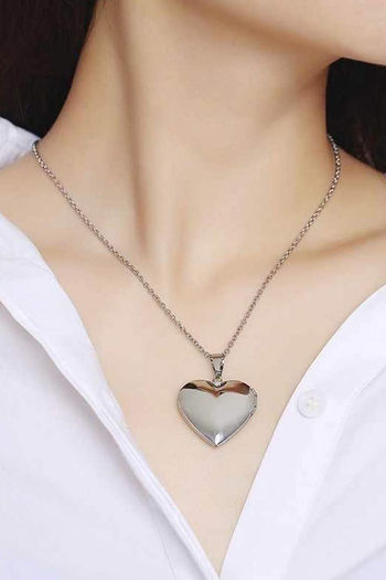 Yellow Chimes Silver Plated Openable Heart Photo Frame Locket Gift Jewelry Pendant Necklace