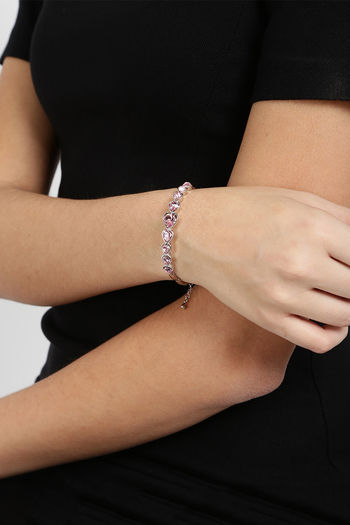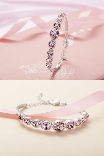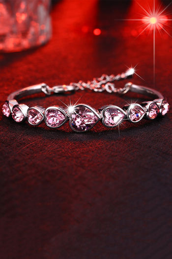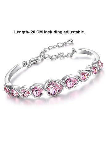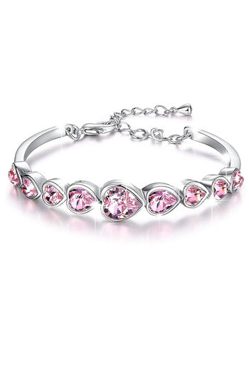 Yellow Chimes Silver Plated Pink Heart Design Crystal Bracelet - Silver