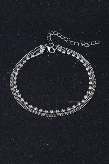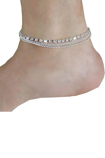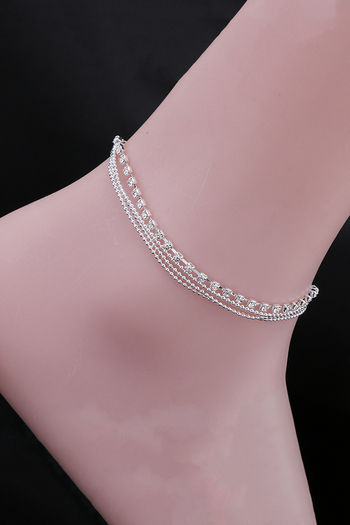 Yellow Chimes Silver Plated Single Leg Stylish Crystal Anklet