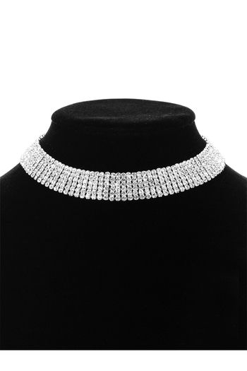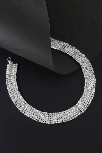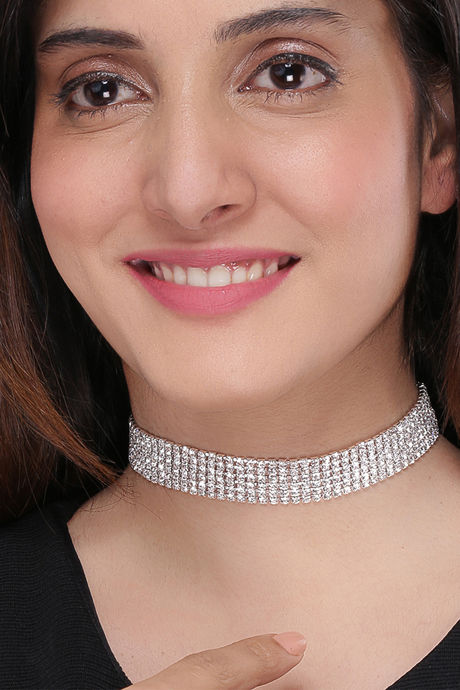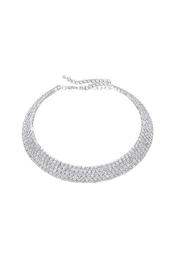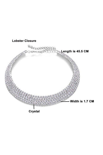 Yellow Chimes Silver-toned Party Wear Crystal Choker Necklace