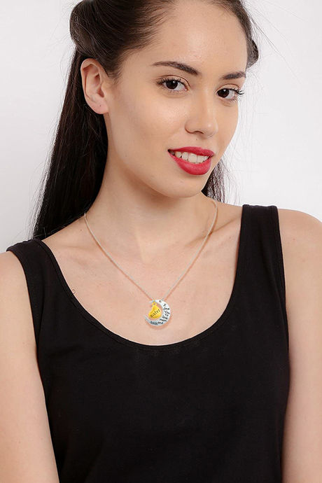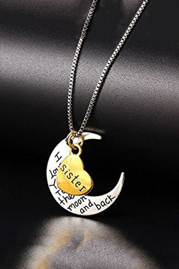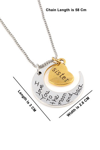 Yellow Chimes Silver toned Sisters Love Special Moon Pendant in Metal