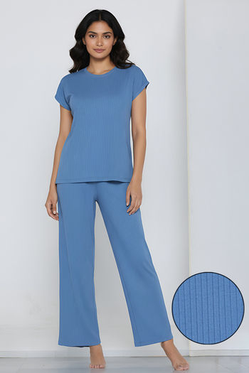 Buy Zivame Citrus Summer Buttersoft Knit Poly Pyjama Set - Pale Blue