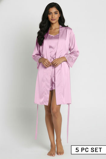 Buy Zivame Luxe Satin 5 Pc Sleep Set - Bridal Rose