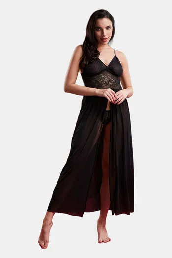 Discover a captivating collection of Women Nightwear & Ladies Sleepwear Sets that combine comfort and style. Our range includes an array of options to suit your preferences, from short nightdresses to sexy sleepwear and nightwear top and shorts sets. Indulge in our selection of sexy night suits that exude elegance and allure. For special occasions, explore our exquisite bridal nightwear, featuring delicate lace and intricate details. Experience the thrill of intimacy with our irresistible baby doll lingerie, featuring a flattering and sensual design. Chemises are a kind of women’s nightwear that give a sensual and feminine touch to your wardrobe. To add a touch of luxury, opt for the best night dress for women with a robe. Embrace ultimate comfort with our selection of night clothes such as long nighties and pajama sets. We also offer nursing or feeding nightwear for pregnant mothers, ensuring style and functionality. Choose from our range of satin night suits and ladies sleepwear sets to relax luxuriously. With our exclusive best nightwear online India collection, you'll be able to upgrade your sleepwear collection.