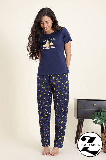 Buy Zivame Farm Lore Knit Cotton Pyjama Set - Naval Academy
