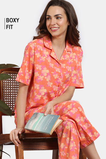 Zivame Aquarelle Woven Loungewear Pyjama Set - Melon