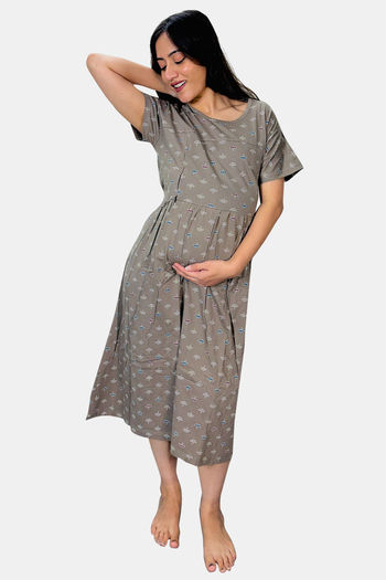 Nejo Cotton Nursing / Maternity Printed Night Dress - Red