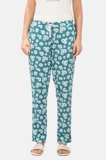 Zivame Knit Cotton Sleep Pyjama - Navy Peony