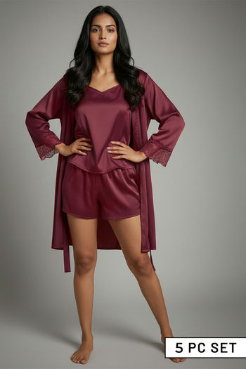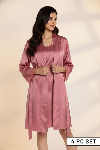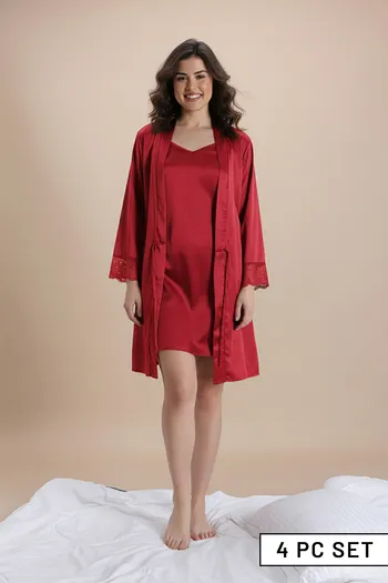 A bridal nighty with a matching robe exudes timeless elegance and understated luxury. Crafted from fabrics such as satin and silk, these nighties feature soft flowing lines. With the gentle embrace of the robe, they create a look that's both graceful and sensually inviting. At Zivame, you can find wedding nighties in varied lengths, fabrics, prints and colours.