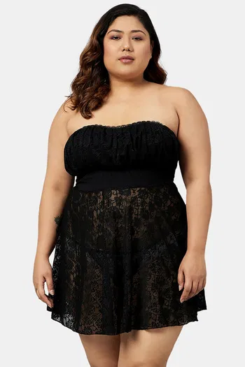 Buy Secrets By ZeroKaata Plus Size Strapless Lace Baby Doll with Thong- Black