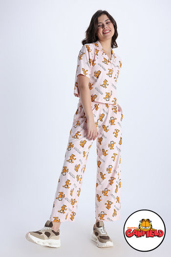 Zivame Garfield Collection Knit Cotton Pyjama Set - Pink Dogwood
