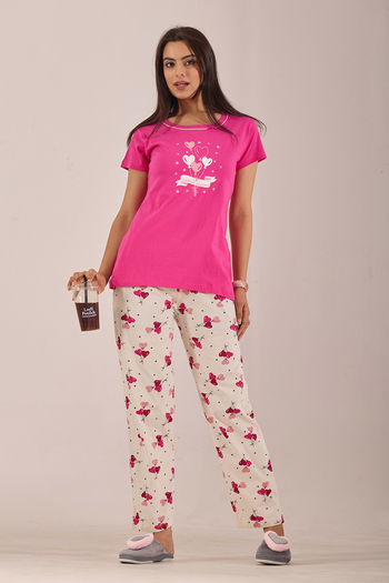 Zivame Floral Hush Knit Cotton Pyjama Set - Island Paradise
