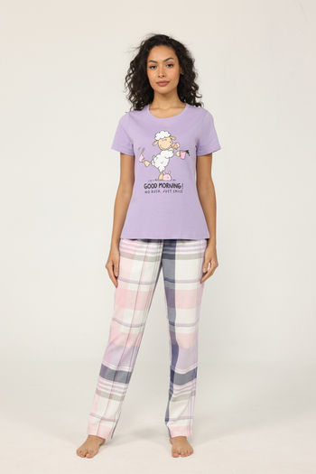 Buy Zivame Knit Cotton Pyjama Set - Pastel Lilac