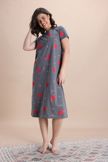 Buy Zivame Knit Cotton Mid Length Nightdress - Steel Grey