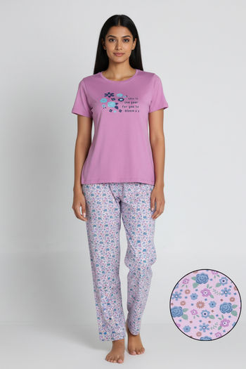 Zivame Knit Cotton Pyjama Set - Orchid