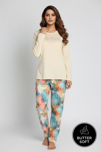 Zivame Buttersoft Knit Poly Pyjama Set - Maple Sugar