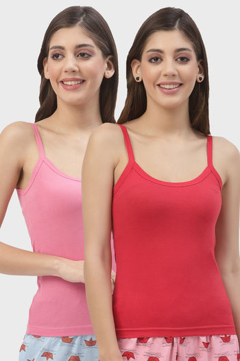 Floret Cotton Camisole (Pack of 2) - Pink Red