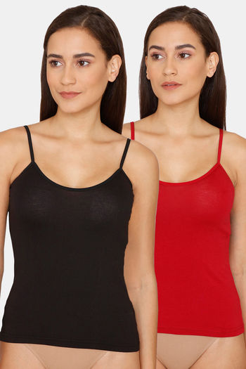 Lady Lyka Cotton Camisole (Pack of 2) - Red Black