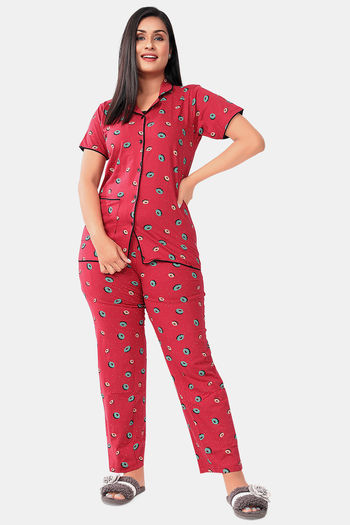 Sweet Moon Knit Cotton Pyjama Set - Red