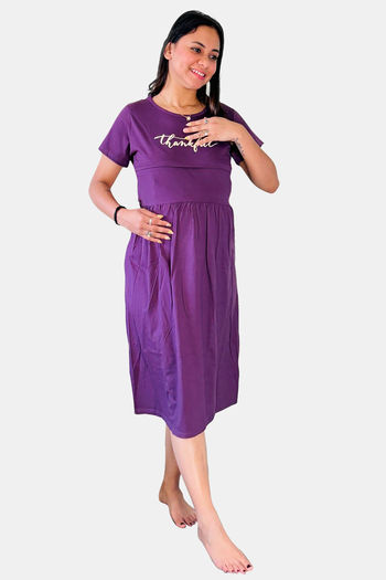 Buy Nejo Cotton Maternity Full Length Nightdress - Lilacfly