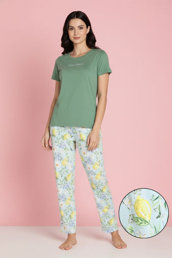 Zivame Knit Cotton Pyjama Set - Island Paradise