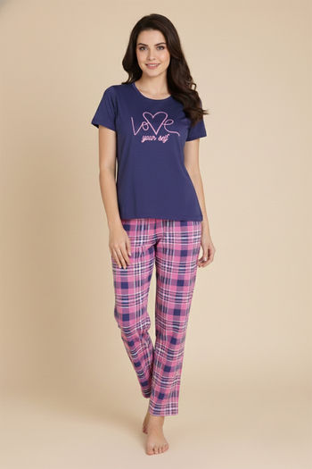 Zivame Knit Cotton Pyjama Set - Wisteria