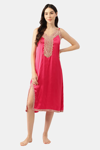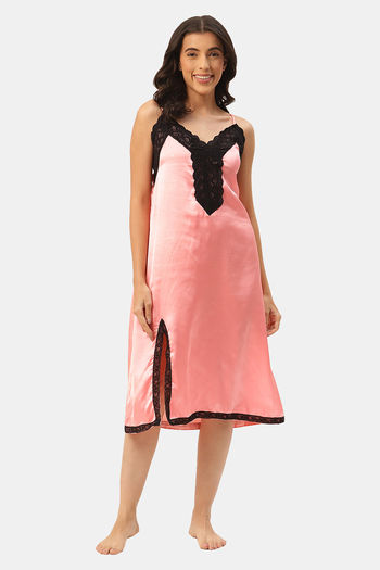 Ms.Lingies Satin Mid Length Nightdress - Pink