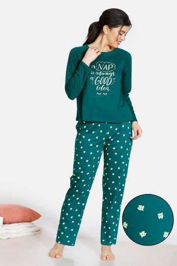 Zivame Pretty Pigs Cotton Pyjama Set - Green