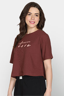 Zivame Donald Duck Knit Cotton Loungewear Top - Mars Red
