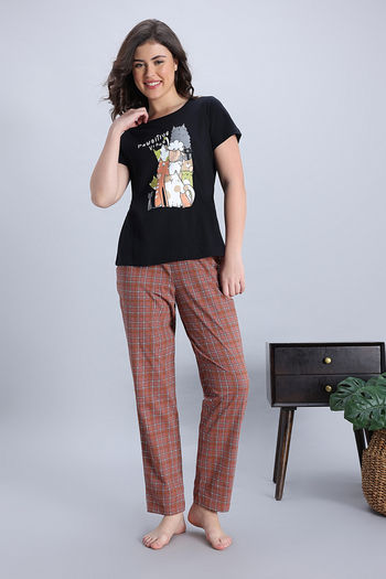 Buy Zivame Knit Cotton Pyjama Set - Black Beauty