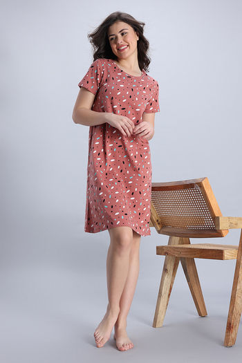 Buy Sweet Moon Knit Cotton Mid Length Nightdress - Pink