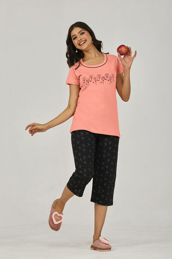Buy Sweet Moon Knit Cotton Capri Set - Black And Pink Combination