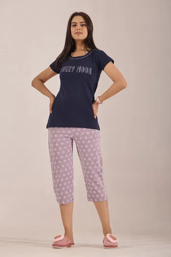 Make your nights trendy and comfortable with Zivame’s women’s capri sets. Similar to a night suit for women , women’s capri sets are made from soft cotton and are comfortable and stylish at the same time. The soft material of the women’s capri sets ensures that you remain cool and relaxed on warm summer nights. They easily double up as loungewear. In short, be it catching a snooze, enjoying a slumber party with your girlfriends, or simply watching your favourite shows at home, these women’s capri sets would be a perfect comfort partner. Right from great colours to cute patterns, you are spoilt for choice here. We have women’s capri night sets for all sizes, from XS to 3XL. less