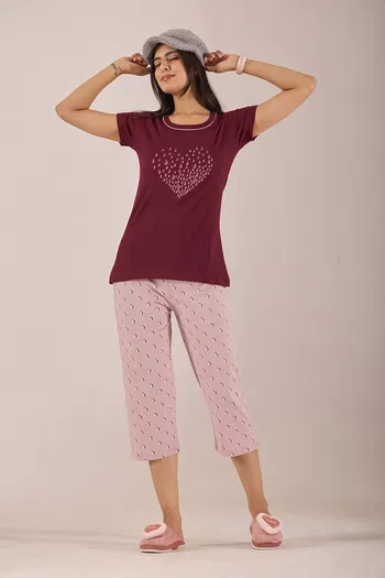 Make your nights trendy and comfortable with Zivame’s women’s capri sets. Similar to a night suit for women , women’s capri sets are made from soft cotton and are comfortable and stylish at the same time. The soft material of the women’s capri sets ensures that you remain cool and relaxed on warm summer nights. They easily double up as loungewear. In short, be it catching a snooze, enjoying a slumber party with your girlfriends, or simply watching your favourite shows at home, these women’s capri sets would be a perfect comfort partner. Right from great colours to cute patterns, you are spoilt for choice here. We have women’s capri night sets for all sizes, from XS to 3XL.