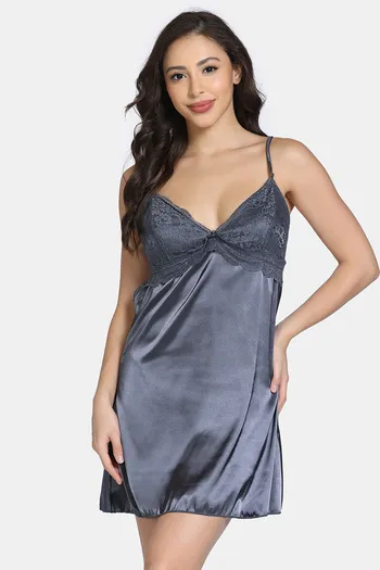 Zivame Silk N Satin Babydoll With Thong - Grey