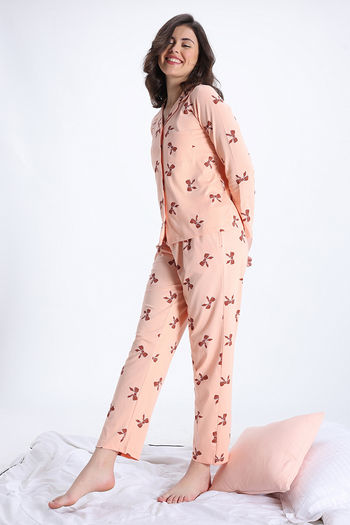 Zivame Knit Cotton Pyjama Set - Aurora Pink