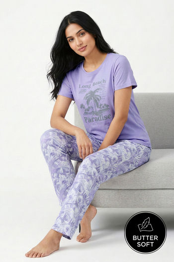 Zivame Knit Cotton Pyjama Set - Wisteria