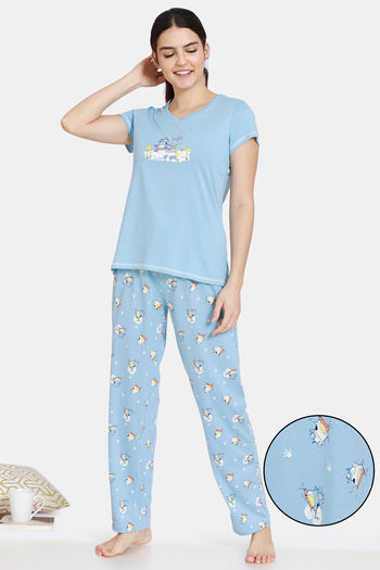 Zivame Looney Tunes Knit Cotton Pyjama Set - Medieval Blue