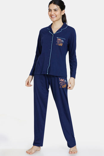 Zivame Mistletoe Magic Cotton Pyjama Set - Navy