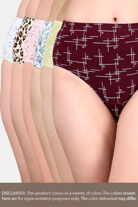 Soie High Waist Full Coverage Printed Cotton Briefs (Pack of 6) - Multicolor