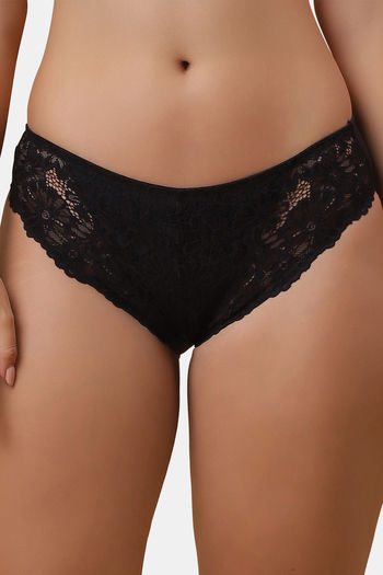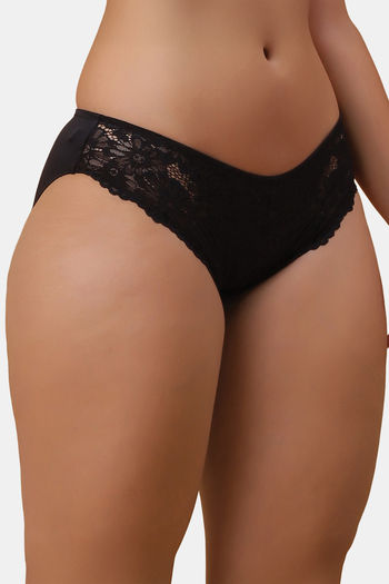 Soie Mid Rise Medium Coverage Lacy Brief - Black