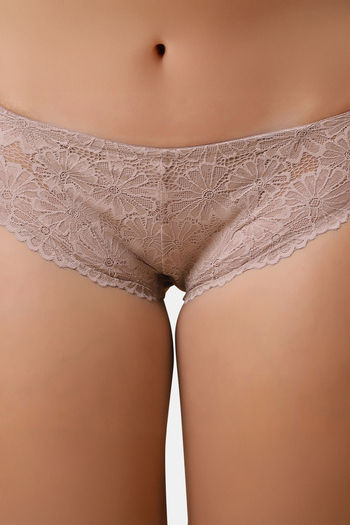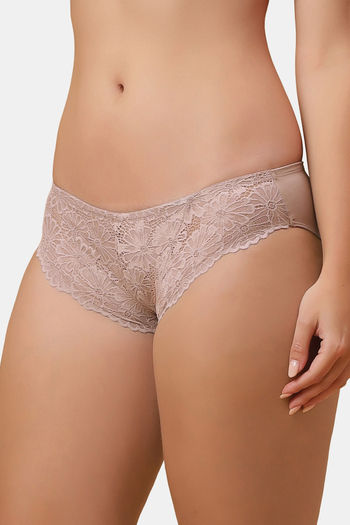 Soie Mid Rise Medium Coverage Lacy Brief - Mushroom