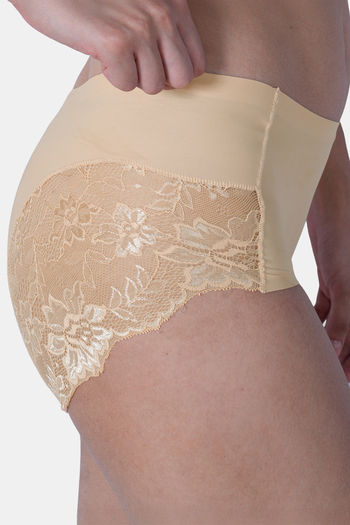 Soie Seamless Mid Waist Full Coverage Lace Brief (Pack Of 2) - Multicolor