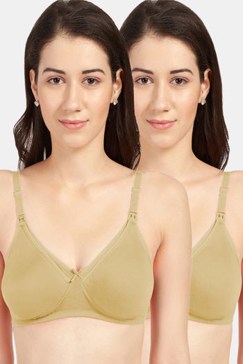 Sonari Babycare Double Layered Non Wired 3/4th Coverage Maternity Bra (Pack of 2) - Skin