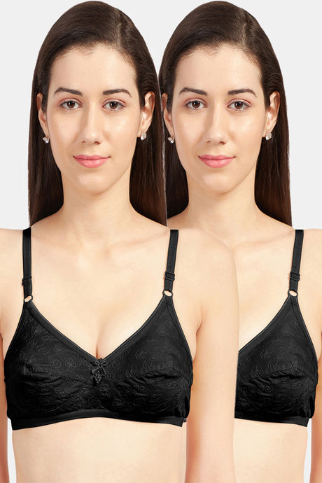Sonari Ladli Double Layered Non Wired Medium Coverage Super Support Bra (Pack of 2) - Black